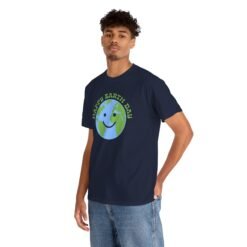 Celebrate the planet with a smile! This cheerful unisex t-shirt features an adorable smiling Earth graphic and the words “Happy Earth Day” in bold, playful lettering.