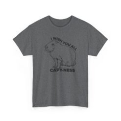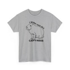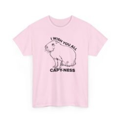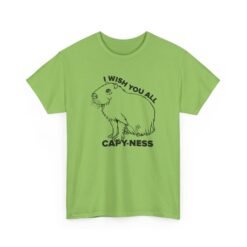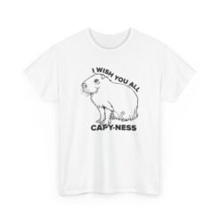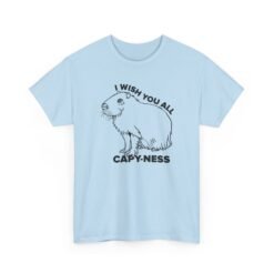 Spread good vibes with this unisex tee featuring an adorable capybara and the cheerful phrase I Wish You All Capy-ness. Perfect for fans of the world’s chillest animal and anyone who loves a wholesome pun.