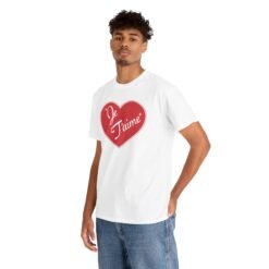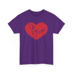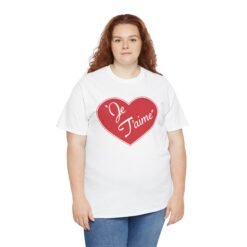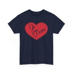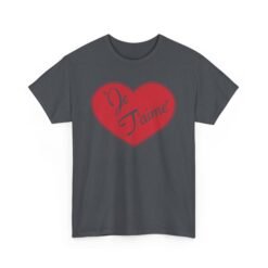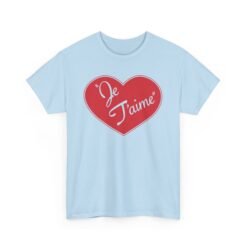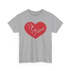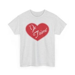 Keywords: Je T’aime shirt, French love t-shirt, red heart graphic tee, romantic unisex shirt, Valentine’s Day shirt, love in French, cute Parisian shirt, I love you tee, heart graphic top, minimalist love shirt