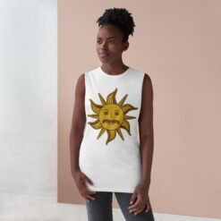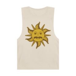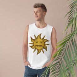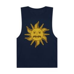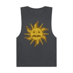 Summon the silly spirit of Camelot with the King Arthur’s Sun Emblem Barnard Tank Top, inspired by the legendary absurdity of Monty Python and the Holy Grail. Featuring the iconic sun emblem proudly displayed by King Arthur on his totally legitimate quest, this tank is a wearable tribute to chivalry, comedy, and coconuts.