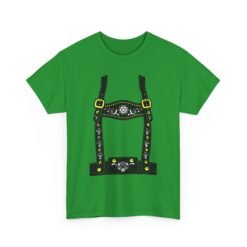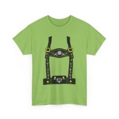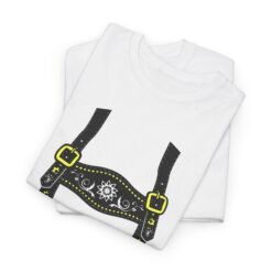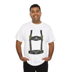 🍻 Instant Oktoberfest Look – Classic lederhosen details are printed right on the shirt—just add a beer and your best “Prost!”