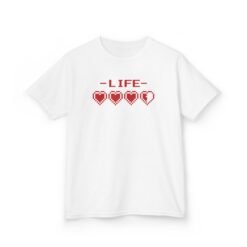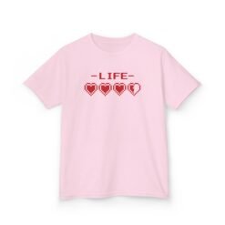 Level up their wardrobe with this fun kids’ tee featuring classic 8-bit game hearts and the word LIFE above.