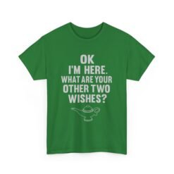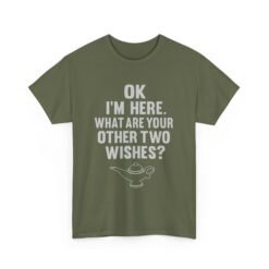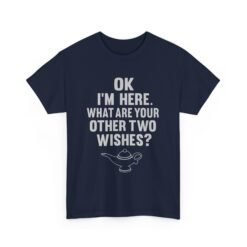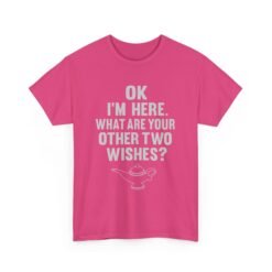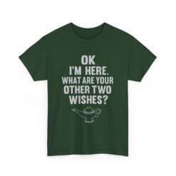 Okay, I’m Here – What Are Your Other Two Wishes? Unisex T-Shirt – Instant Charm Included