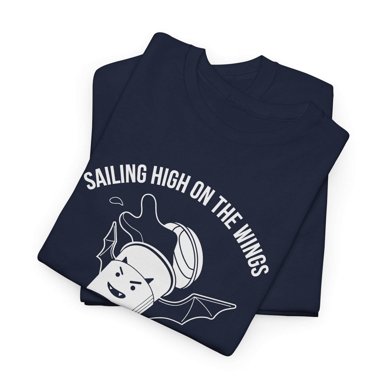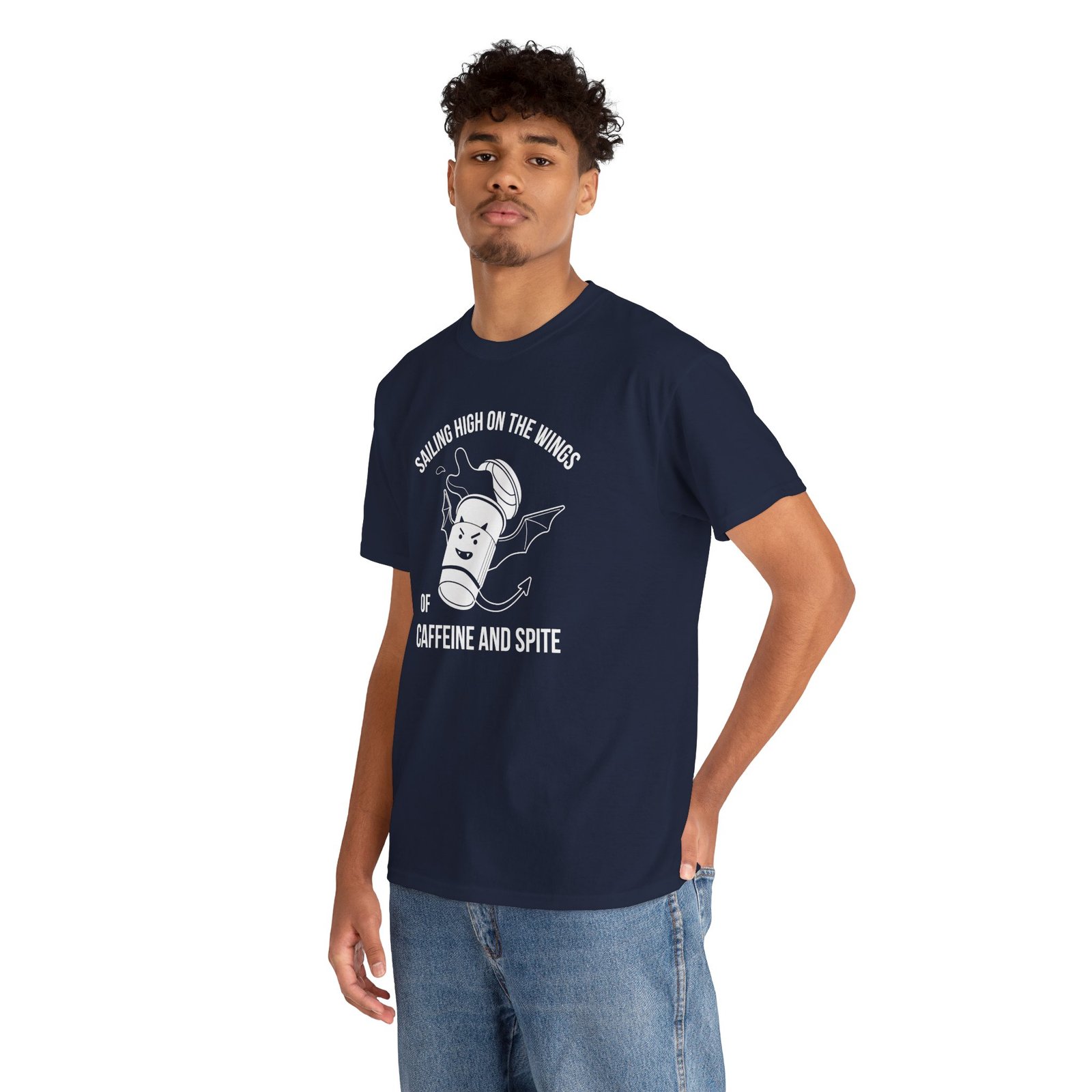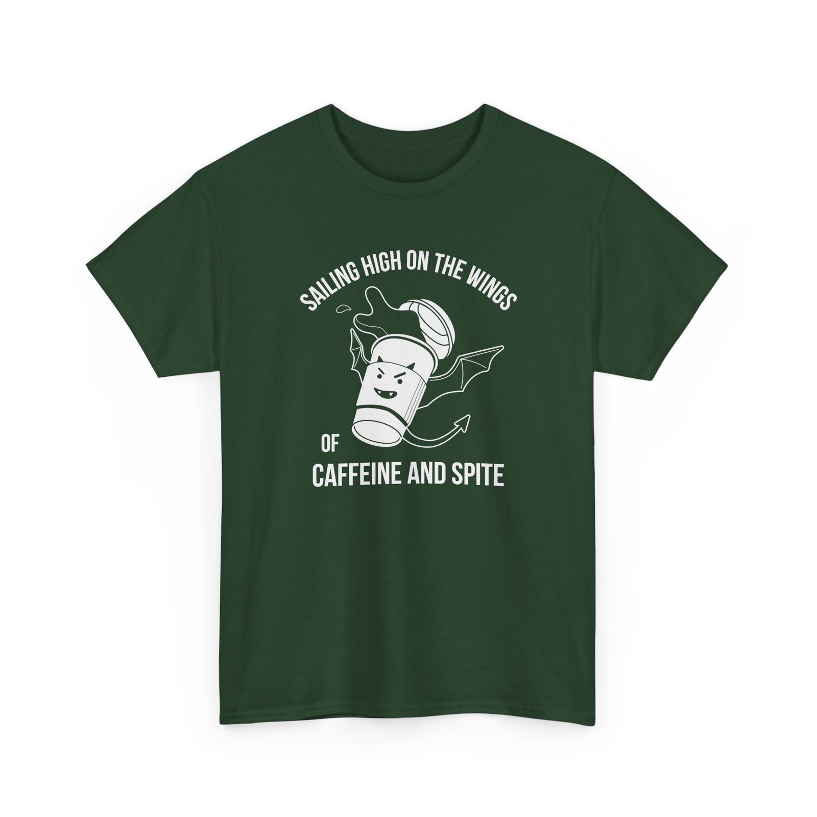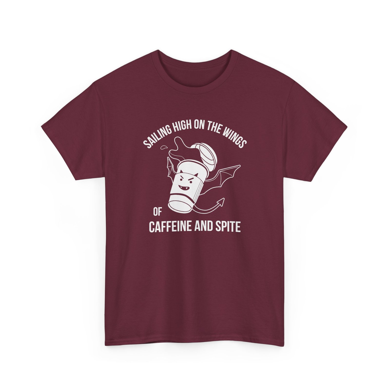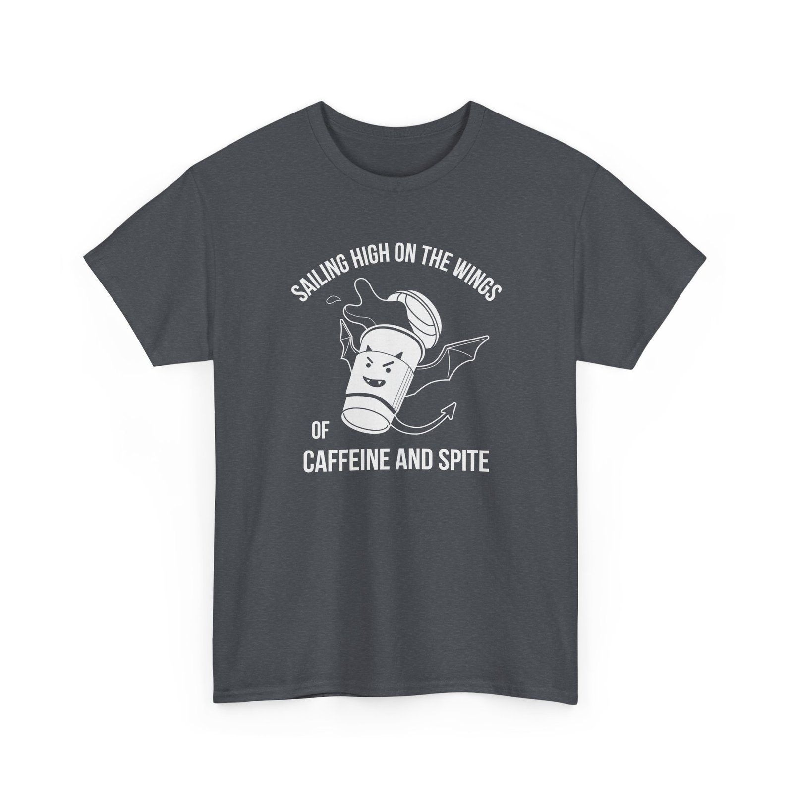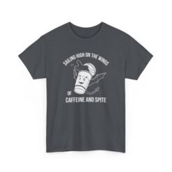 “Sailing High on the Wings of Caffeine and Spite” Unisex T-Shirt – Dark Roast Energy