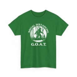 Keep your distance in legendary style with this unisex tee featuring Bigfoot strolling through the forest and glancing over his shoulder, paired with the words Social Distancing G.O.A.T. Because when it comes to avoiding people, nobody does it better than Sasquatch.