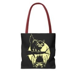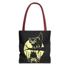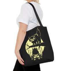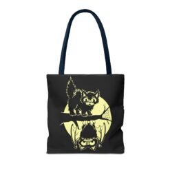 Tags: cute halloween tote bag, spooky cat and bat bag, moonlit halloween tote, gothic halloween accessory, whimsical spooky tote, halloween candy bag, family friendly halloween tote, fall festival tote, black cat halloween bag, bat and moon tote