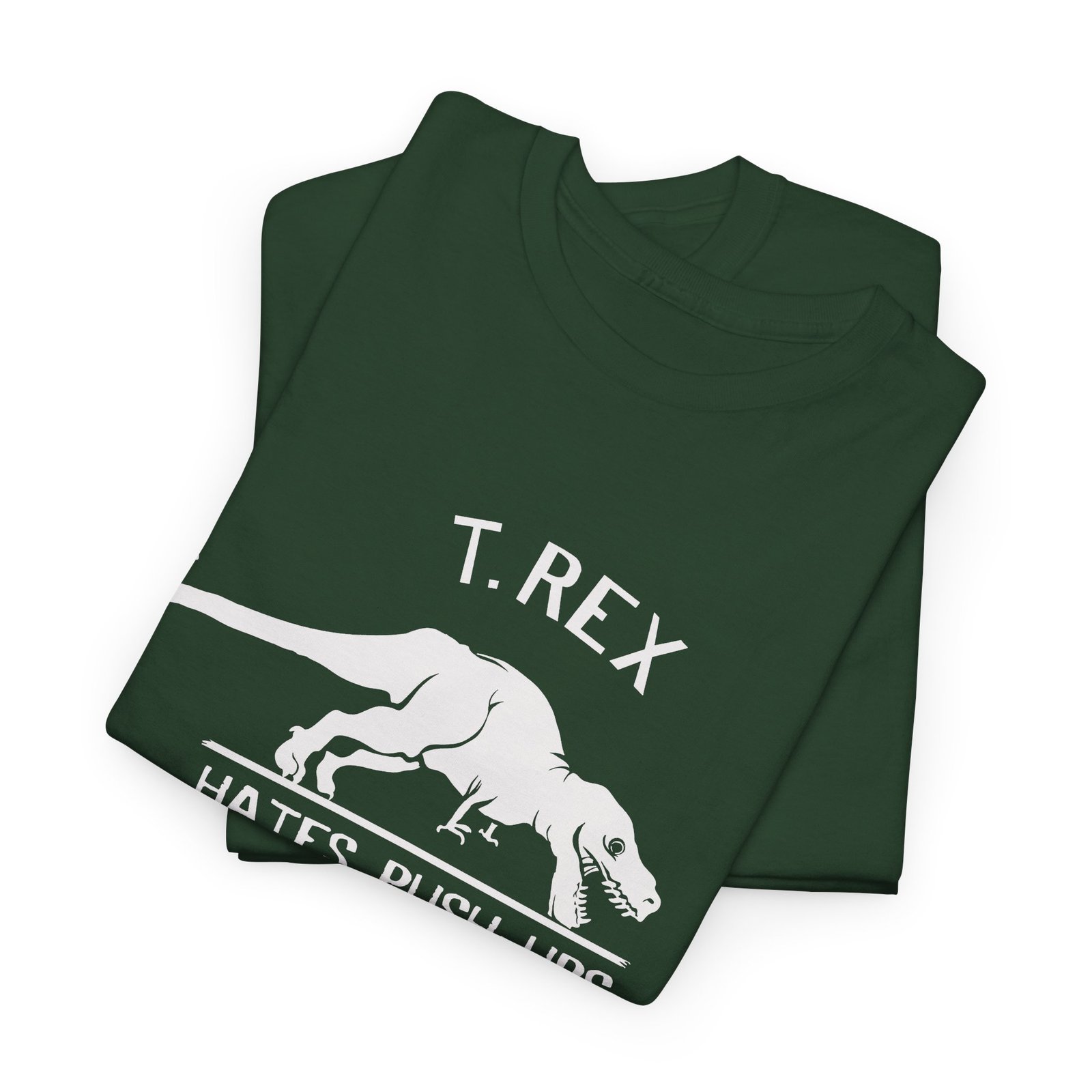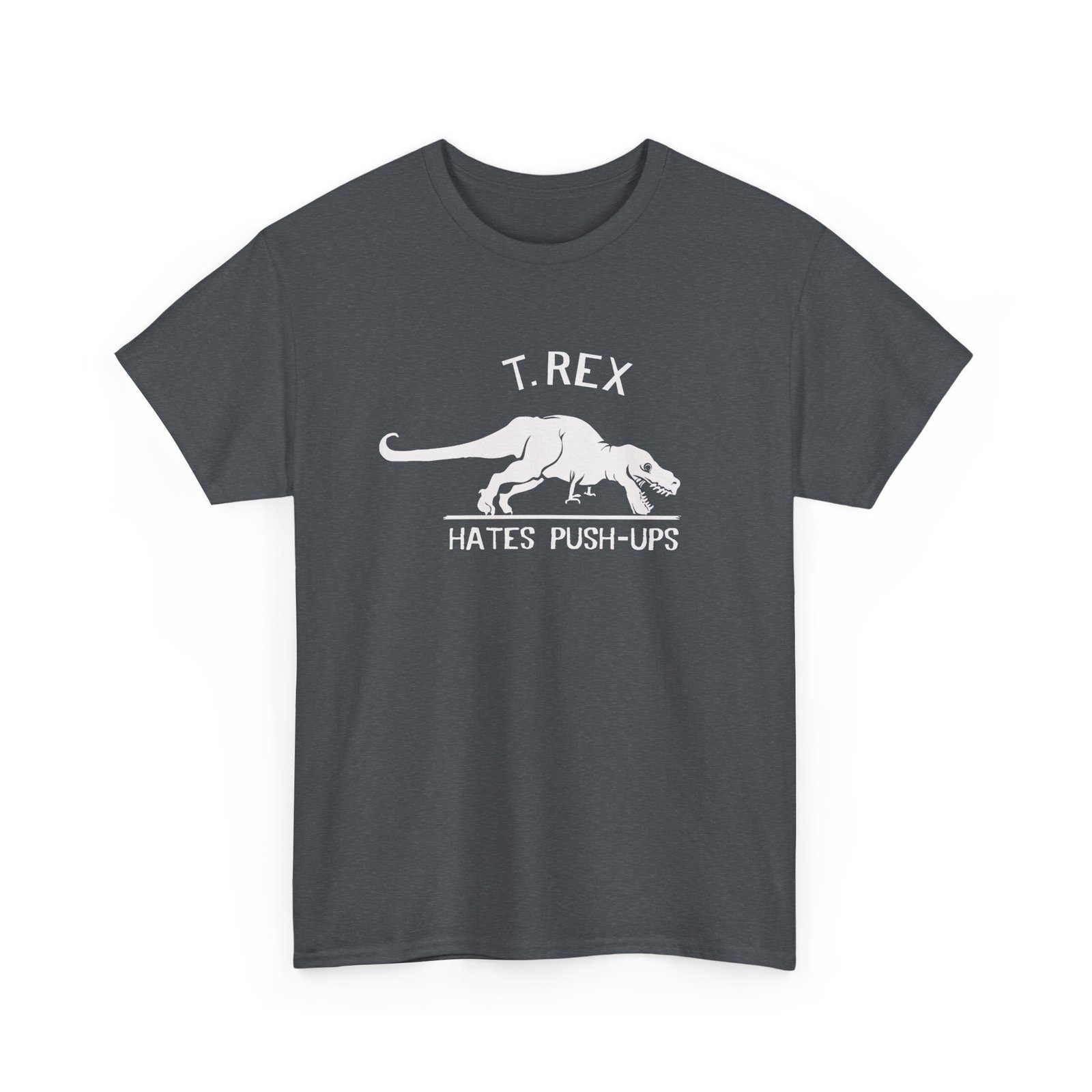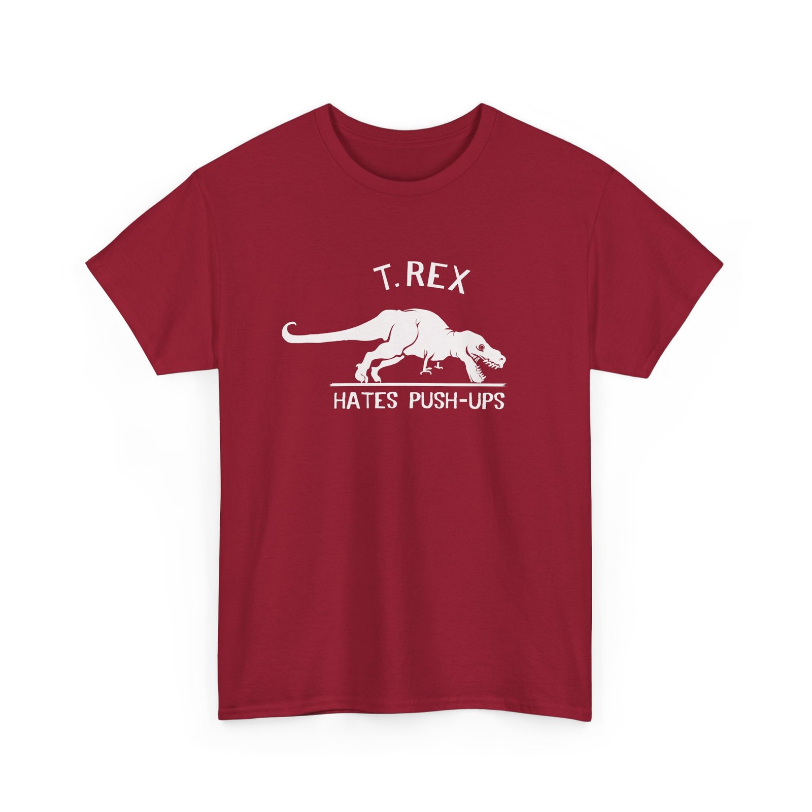 Tags: T. Rex Hates Pushups Shirt, Funny Dinosaur T-Shirt, Gym Humor Tee, Unisex Workout Joke Shirt, Dino Lover Clothing, Fitness Comedy Tee, Prehistoric Humor Shirt, Workout Struggle Graphic Tee, T-Rex Gym Shirt, Funny Exercise Apparel