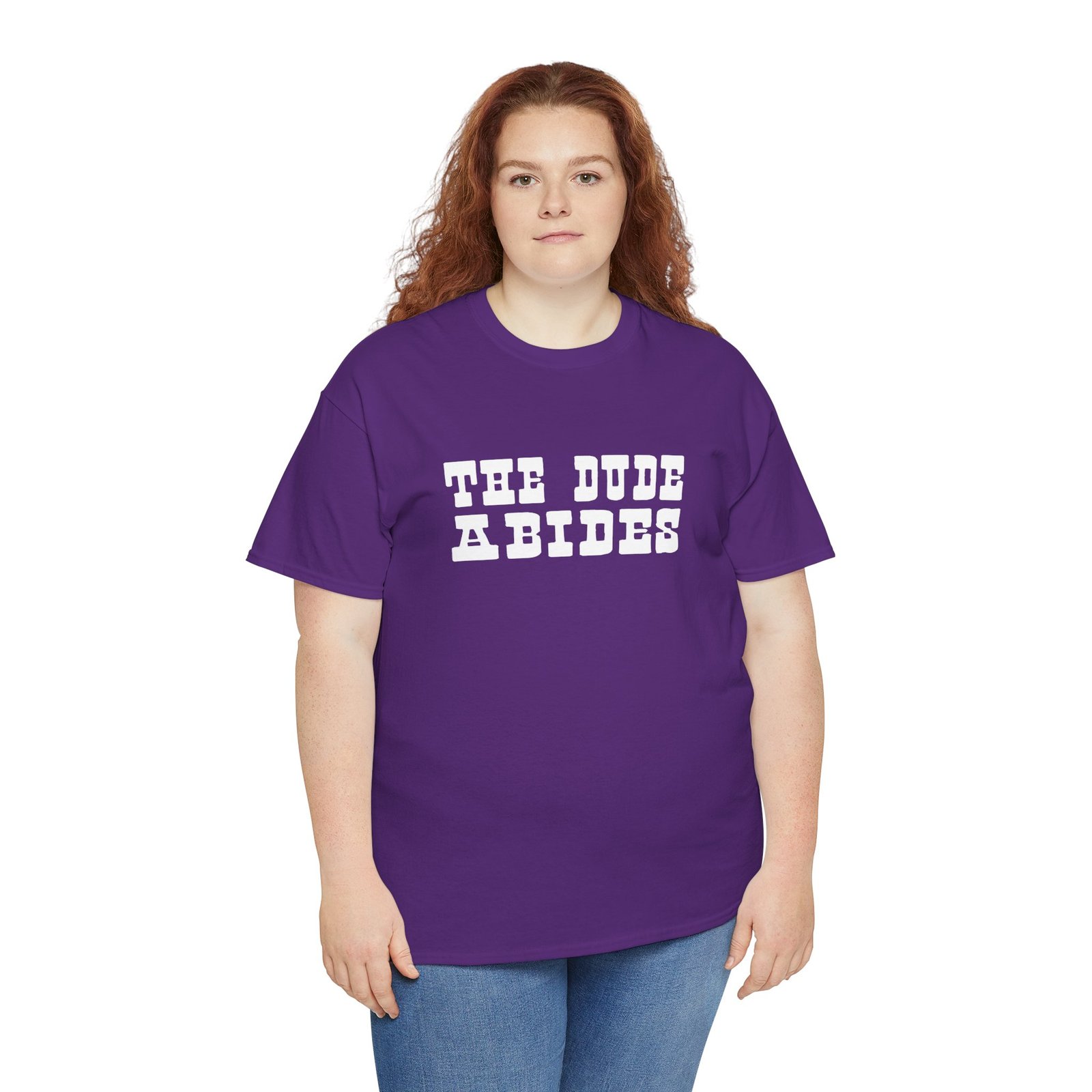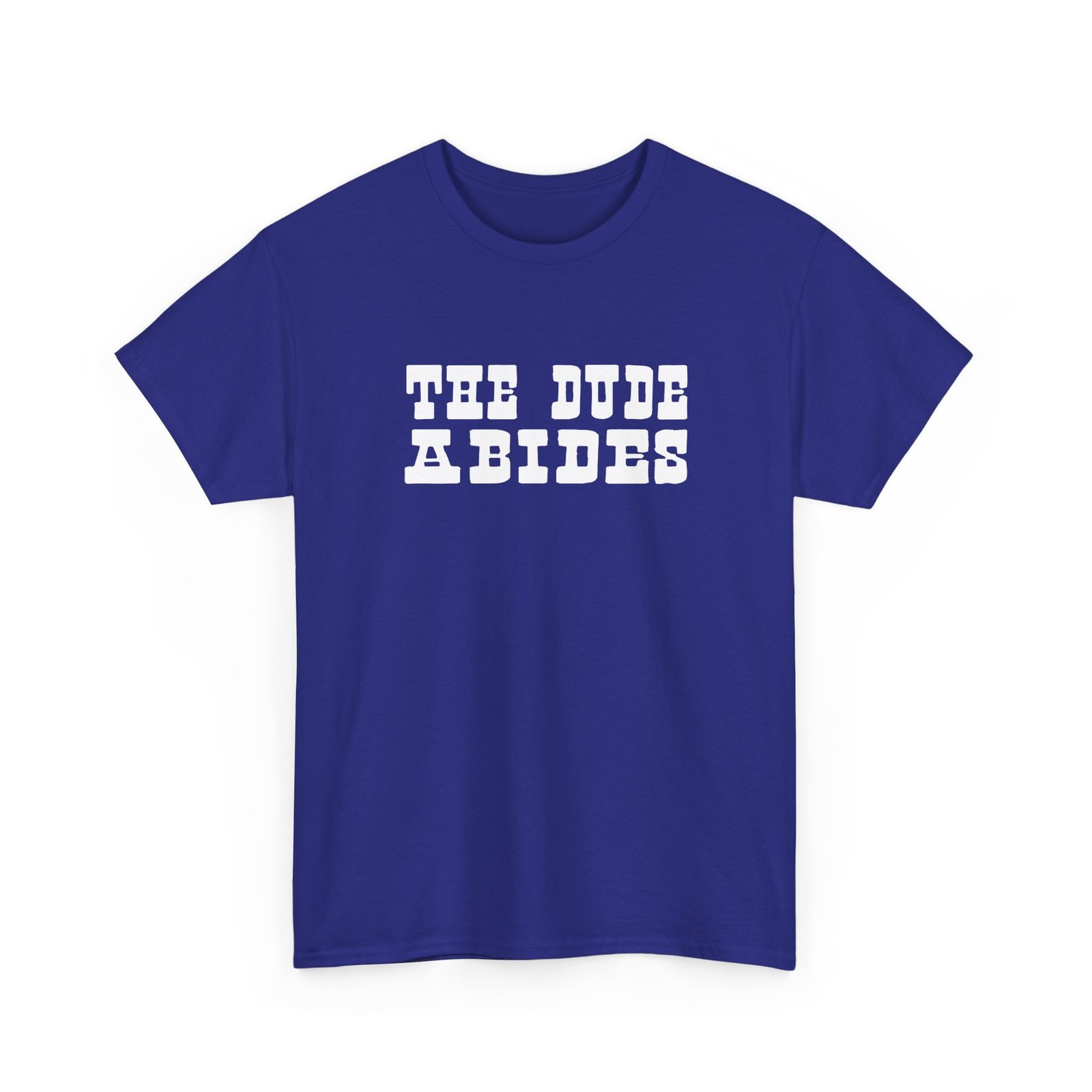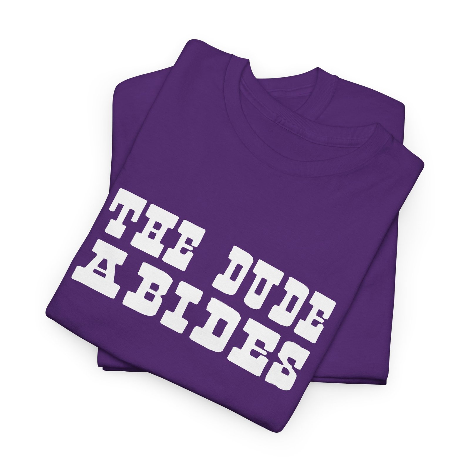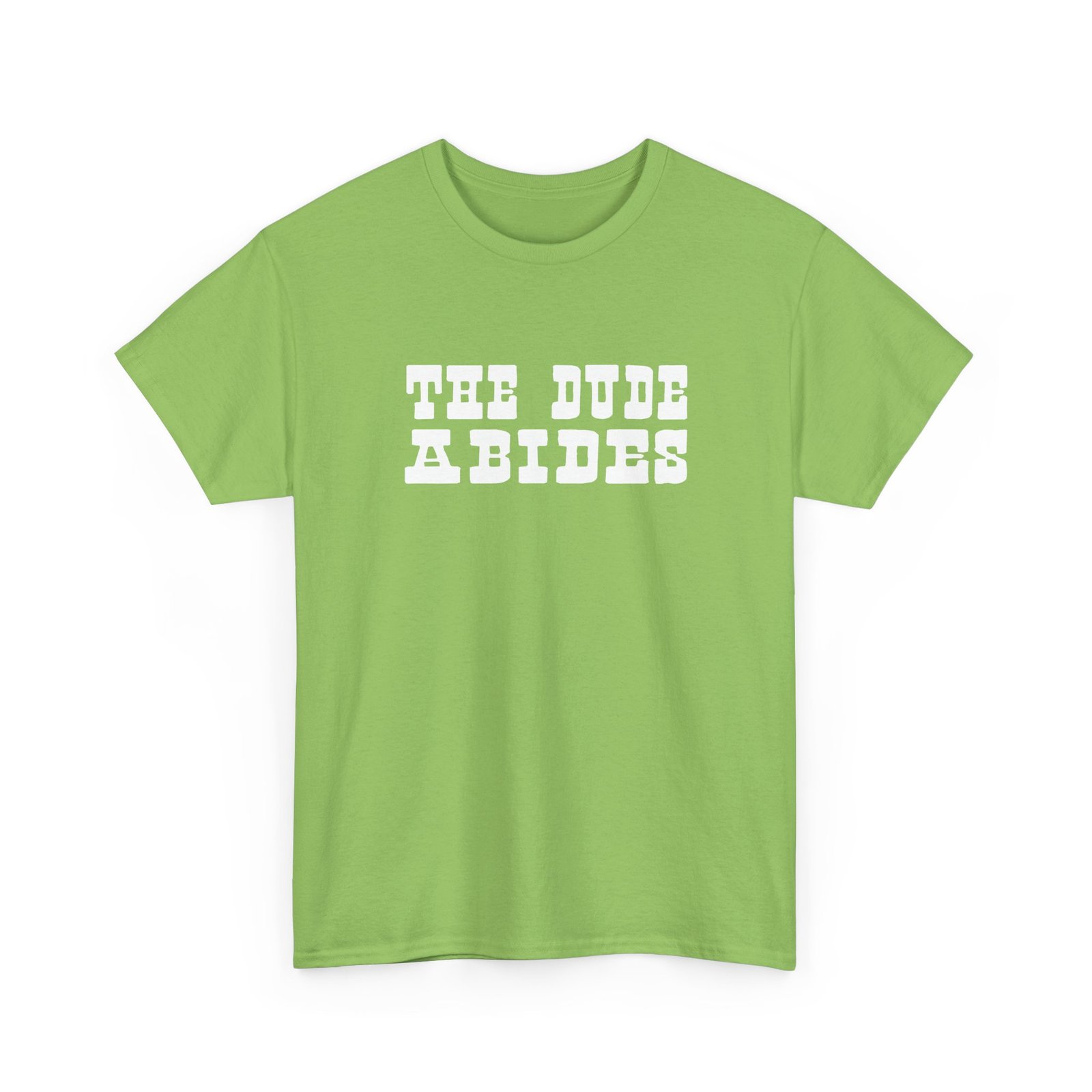 Channel ultimate chill vibes with this unisex tee featuring the iconic quote The Dude Abides. A nod to The Big Lebowski, this shirt is perfect for fans of the cult classic who live life one rug (and one White Russian) at a time.