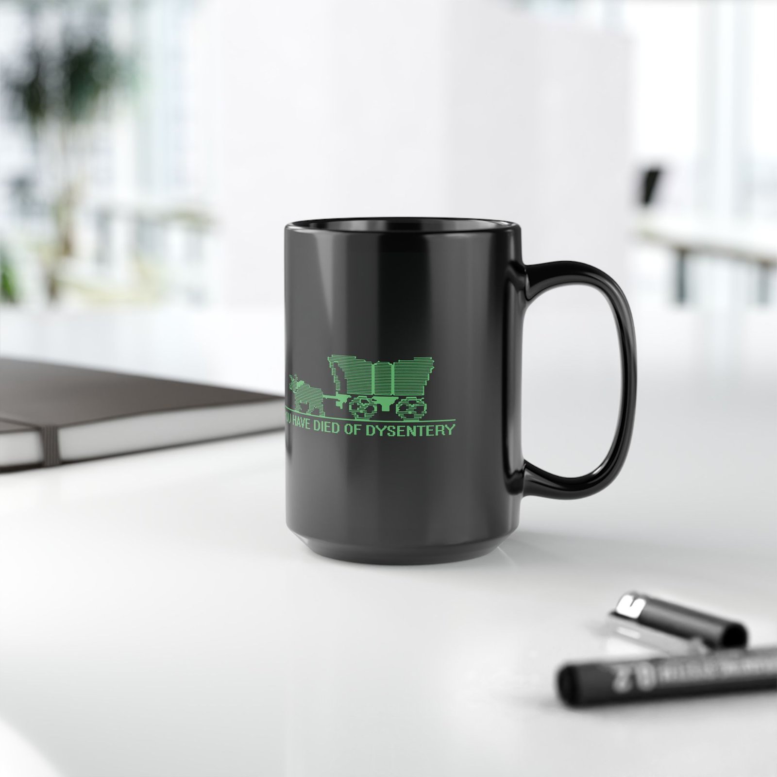You Have Died of Dysentery Black Mug – Retro Oregon Trail Throwback